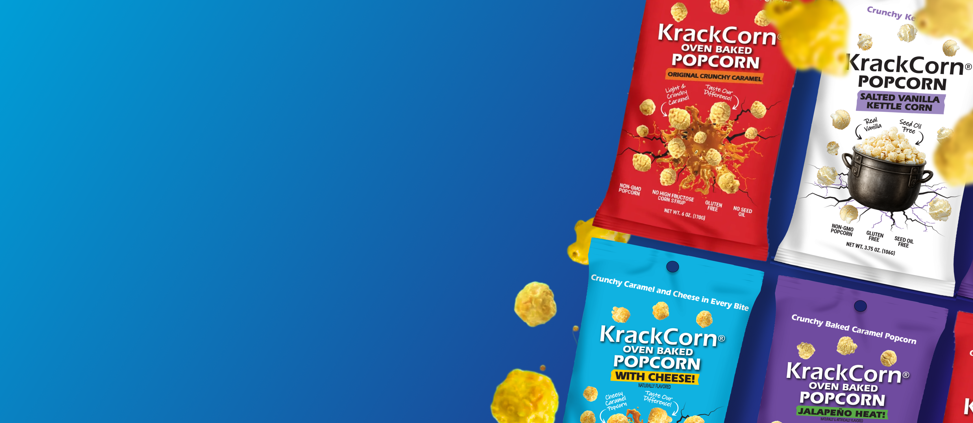 Indulge in KrackCorn® Popcorn’s perfect balance of sweetness and crunch.